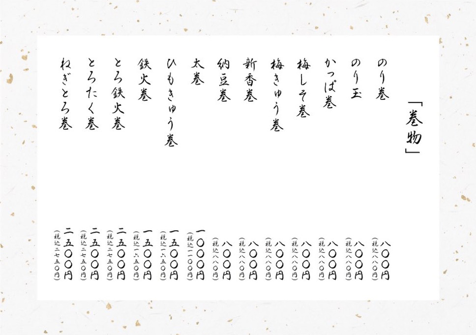 • 知り合いのお寿司屋さんが、メニューを刷新したいとのことで、こちらを作成しました。今回は、デザイン費用をいただく代わりに、お米10キロでお取引させていただきました。